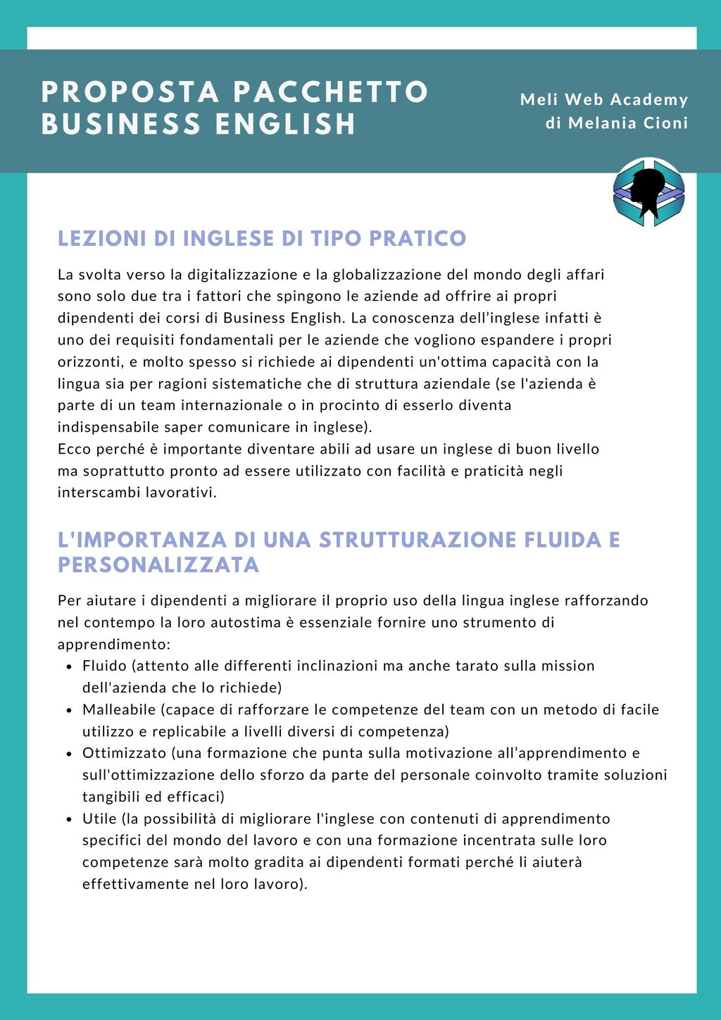 Meli Web Academy struttura con le Aziende percorsi di formazione diretti alle risorse umane a qualunque livello per permettere ai dipendenti di ottenere una dimestichezza reale con la lingua Inglese.
